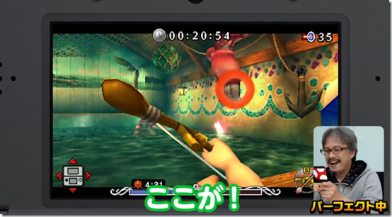 He says that reflex-based games like these become tougher as you get older, but it definitely looks like Mr. Aonuma gets into it, and hes actually not half bad using the Gyro controls. In the end, Aonuma is satisfied with his new record of 47 hits; however, the victory is short-lived, as he is then told to try getting a perfect of 50 hits, to which he responds with a laugh, saying oh, please.