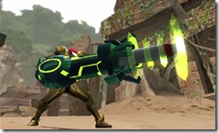 “When you think of Samus as a character and when you think of Metroid games, the first thing that comes to mind is the arm cannon, which is such an integral part of the character,” Fujioka said. “We knew we wanted to do not just armour but also a weapon that was themed after Metroid, and go in that direction. And then it came down to what specific type of weapon would be a match for that, visually and gameplay wise.”