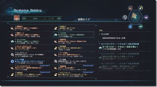 Soul Voice types can be manually set outside battle, & there are various types of Soul Voices with a number of effects.