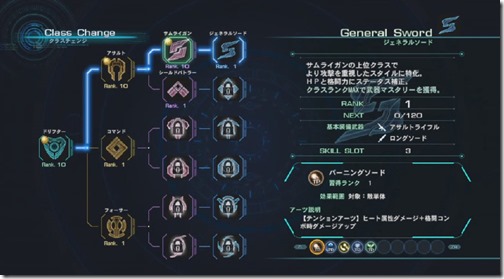 Each class has its own Arts and usable equipment, but in the end, it will be up to your preferred playstyle. There are various advanced classes as well. For example, the Assault class is shown branching into “Samurai Gun” and “Shield Battler”.